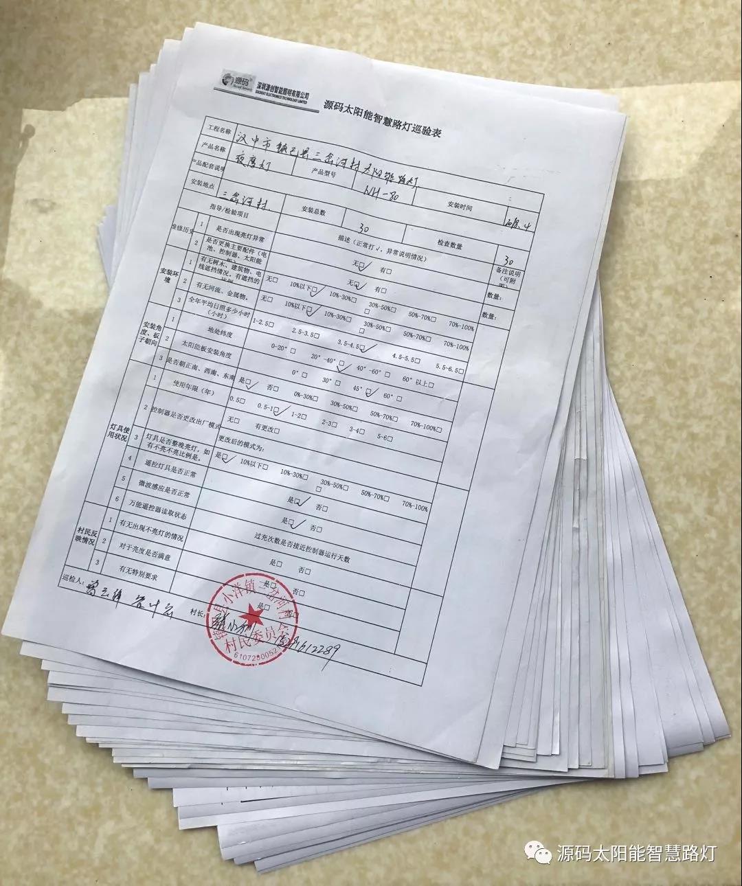 此次巡檢任務(wù)繁重,區(qū)域面積廣,共去了陜西省的五個(gè)市,七個(gè)縣,四個(gè)區(qū)進(jìn)行巡檢。每次巡檢完陽(yáng)光服務(wù)隊(duì)都會(huì)找當(dāng)?shù)卮迕窳私庠创a太陽(yáng)能路燈的運(yùn)行情況,并了解各地環(huán)境、氣候等方面的大數(shù)據(jù)信息。此外,還會(huì)找到當(dāng)?shù)氐拇逦顚?xiě)源碼的巡檢表,對(duì)巡檢情況做評(píng)判。